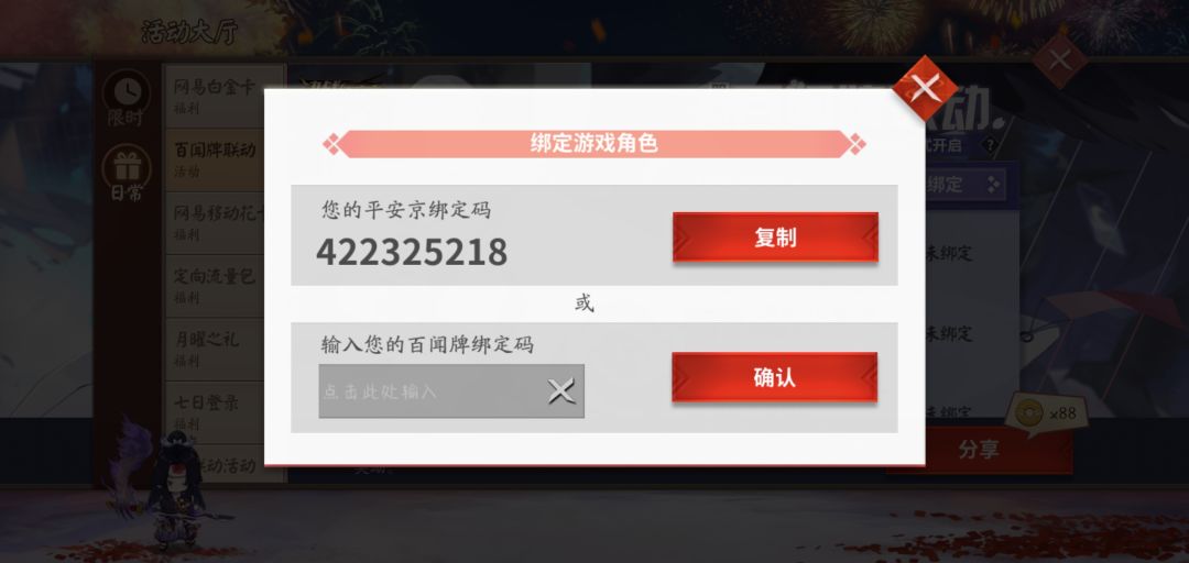 平安京来的求绑啊,因为绑定码会变动,所以加q哇(3348526145)