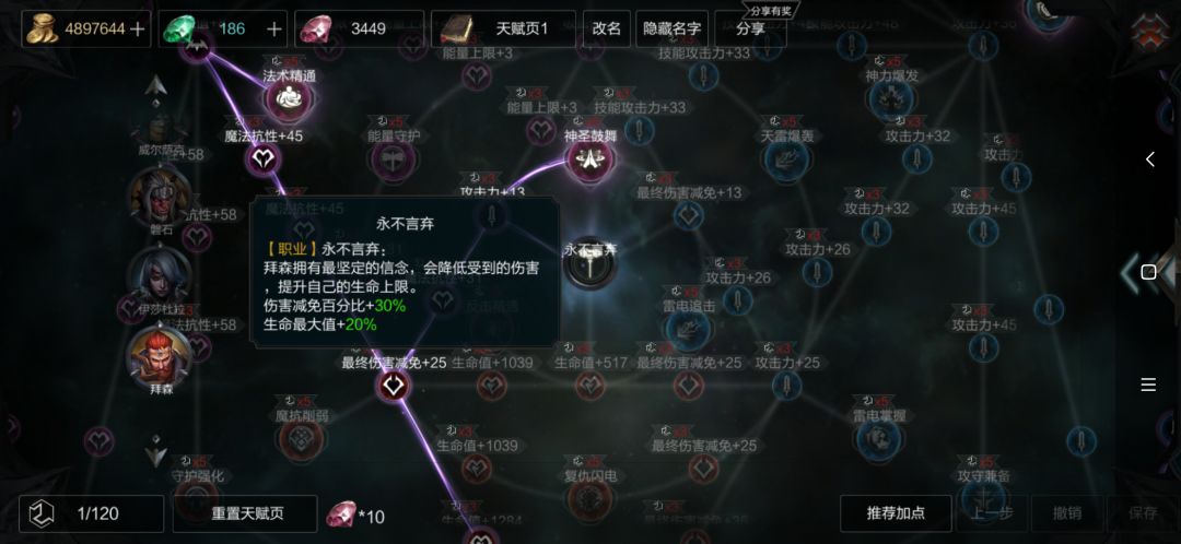 码了这么多字,不知道大家看明白没有,拜森天赋中的伤害减免百分比,并不是减少所受伤害的百分比,而是增加属性面板中伤害减免的百分比。