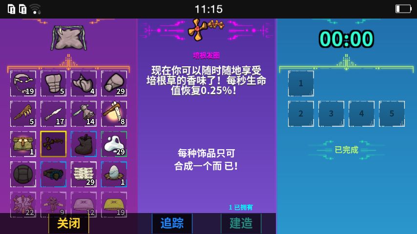 培根发圈是一个可以从第一世界一直用到通关的饰品。每秒回复0.25%的生命值。