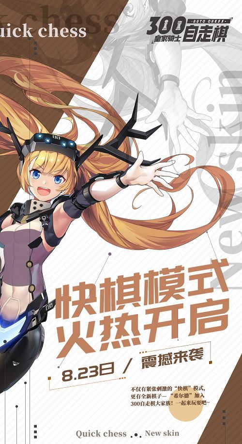 8月23日,《皇家骑士:300自走棋》快棋模式将会降临奥特奇斯(AutoChess)大陆,更加刺激的战斗,将为各位骑士大人们带来更棒的战棋体验!请大家拭目以待!