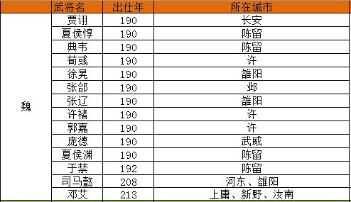 经常听到群里面有玩家问,某某武将为啥搜索不到,谁谁出仕时间又是多少之类的问题,今天我就整理一份常用名将的出仕时间表,希望能对大家有所帮助。另外鉴于武将有逝世的时间,因此我按照第一个剧本189年并开了不朽模式来统计,如有遗漏或者你喜欢的武将未在列,可以留言,我后续补上。