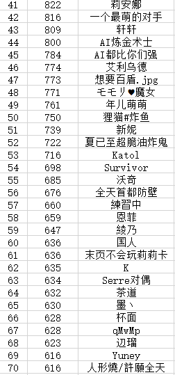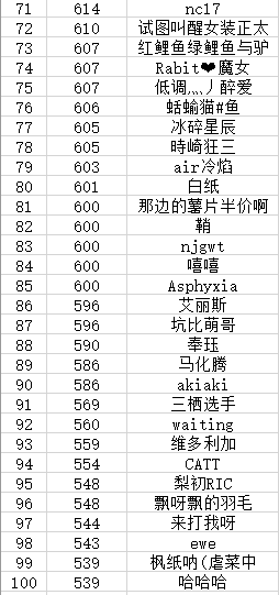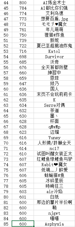 下面V酱来公布本次获得爬排行奖励的玩家名单: