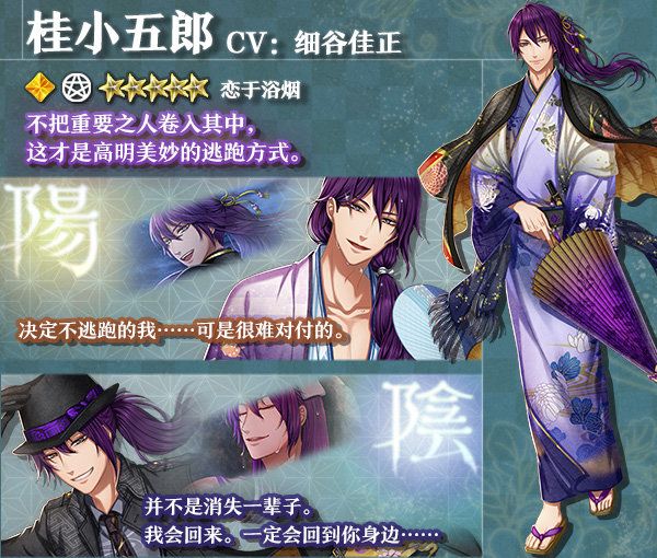 ★5 桂小五郎(CV:细谷佳正) 装束:恋于浴烟 活动积分加成+10%UP