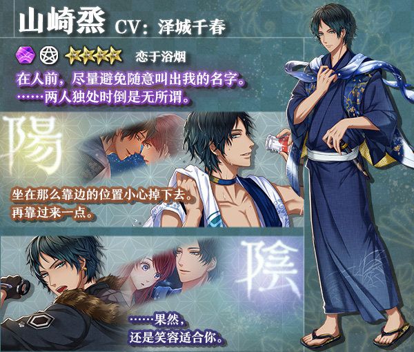 ★4 山崎烝(CV:泽城千春) 装束:恋于浴烟 活动积分加成+5%UP: