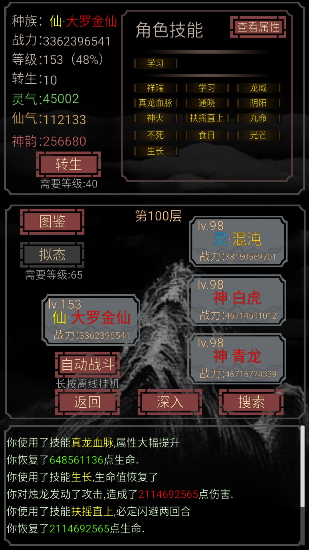 不够10转或者不想费等级刷可以把光芒换成五色鹿的仙灵,食日换成鲲的吞噬