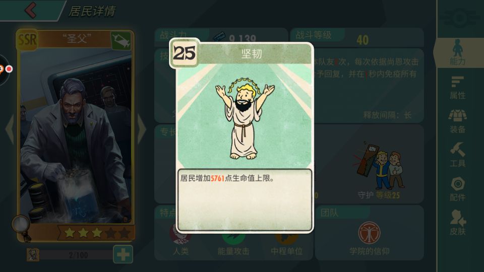 (3)被动技能:守护&坚韧:①我们先来看看守护,可以看到我现在25级守护(我是咸鱼没错)。可以增加全队750点双抗,可以说已经不错了。②其次就是坚韧,这个应该都知道,就是增加自身最大生命值的,一般就是坦克或者辅助有,就不用多说了。