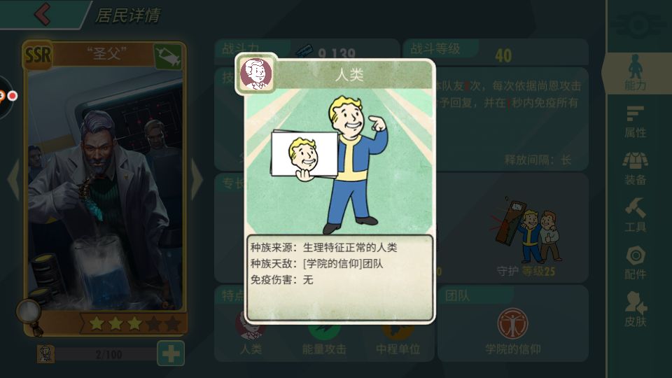 ①人类:生理正常的人类(活生生的人)。要注意这个特点被学院团队克制。话说这点很重要,其他(除动物,外星人)种族都有辐射减免,特别是尸鬼,更是能提供100%的辐射减免。