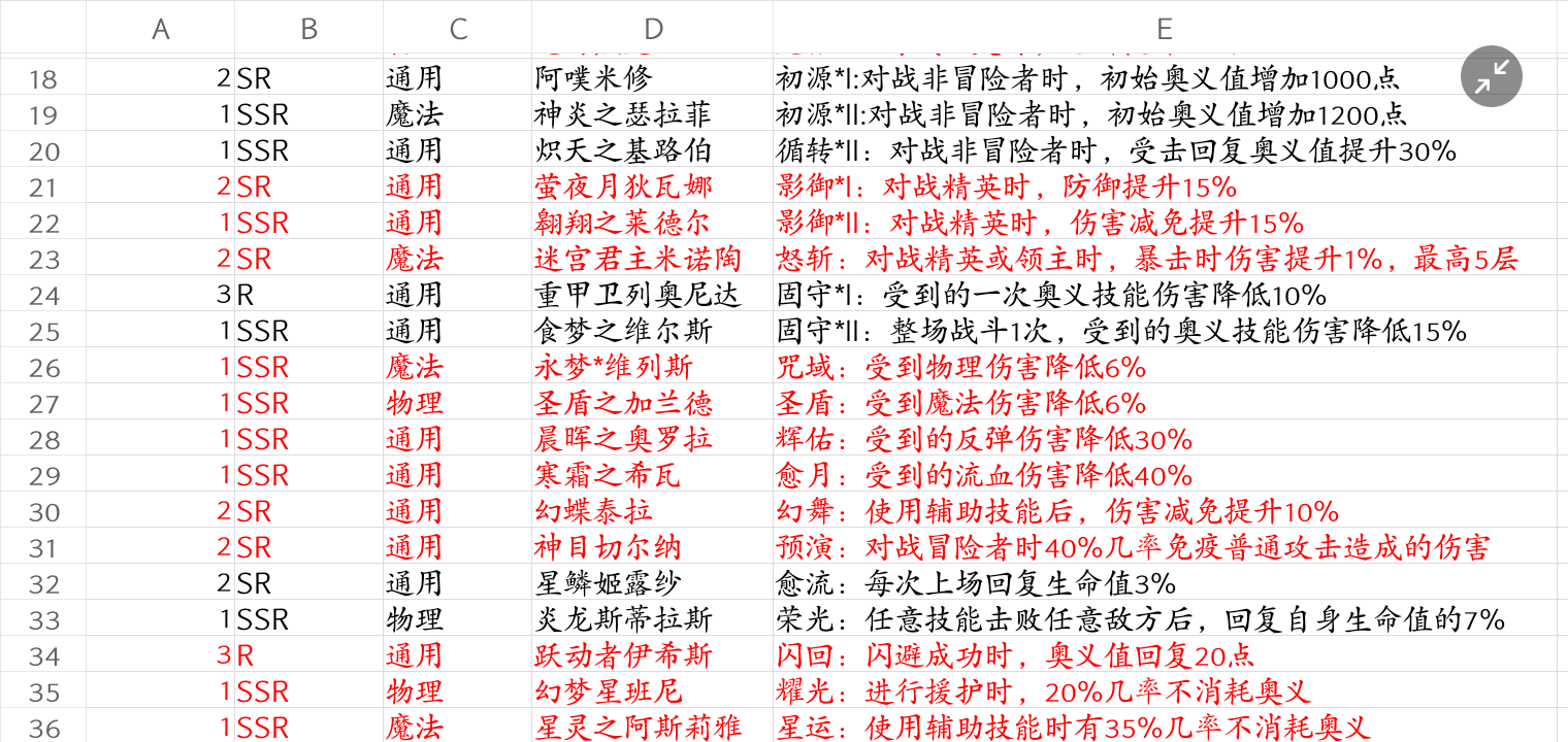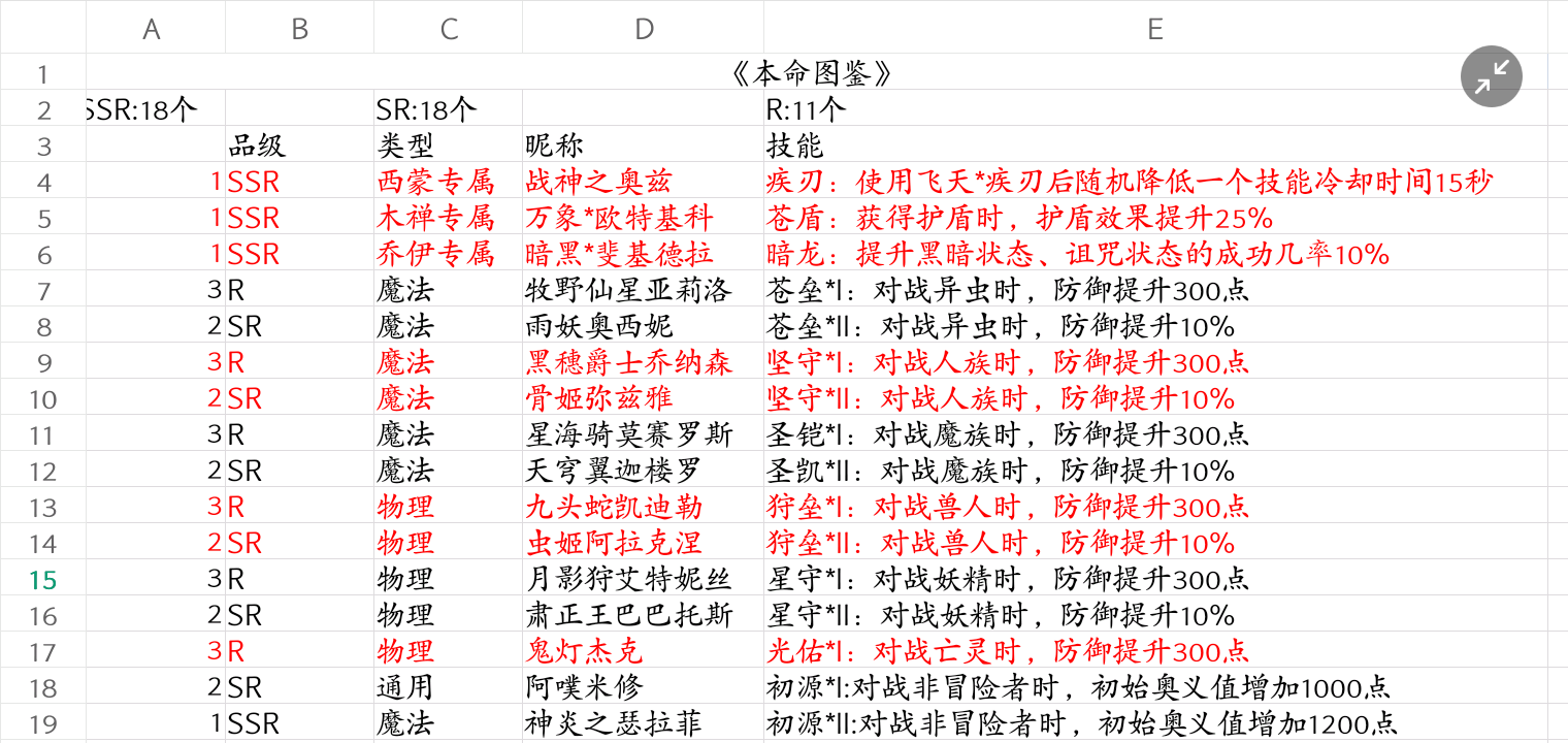 下面为大家提供SSR 18个,SR 18个,R 11个的版本,欢迎大家继续完善。