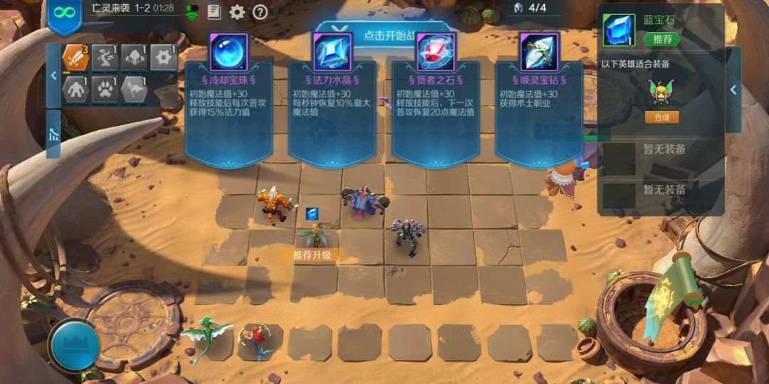 1-2 我带了机器人的羁绊,将两个宝石装在精灵的身上,合成后选择每秒回蓝的装备