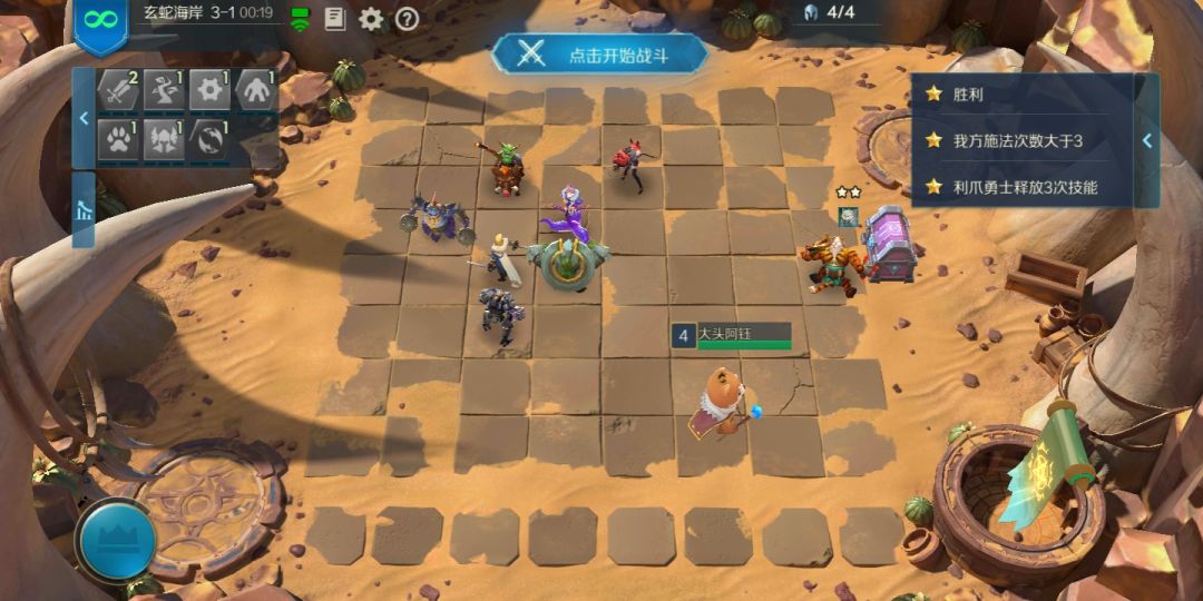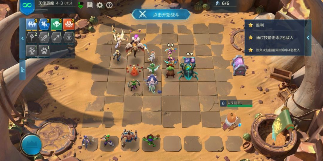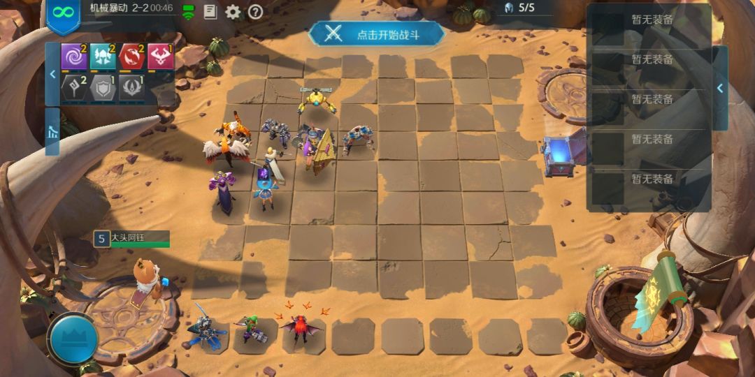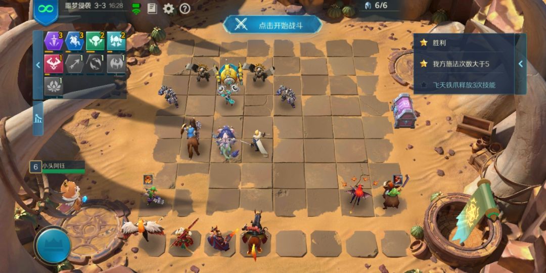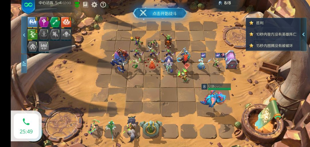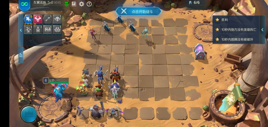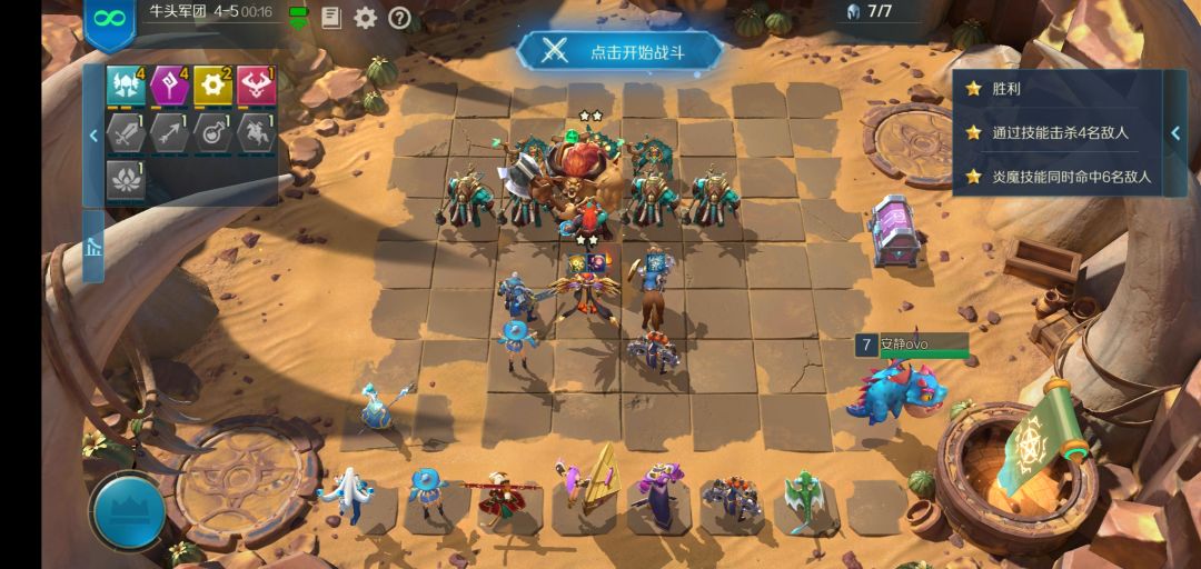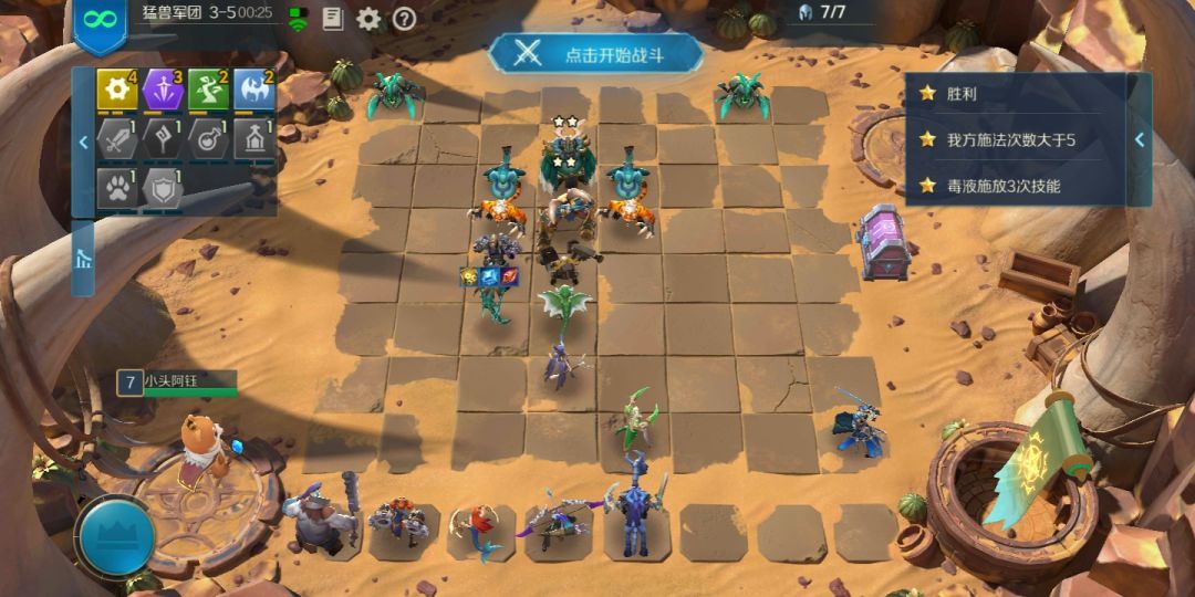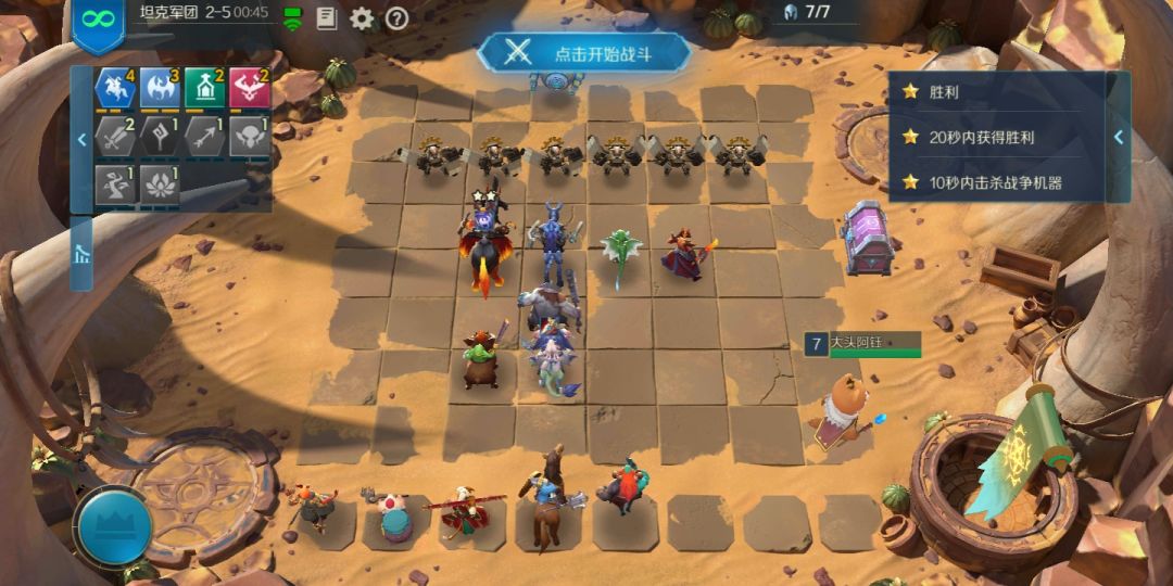 每次对面的行动方式都不一样,但是这是我试过唯一一次可以把后两个条件都满足的 必须有两个刺客站在鼓起将军的正下方(正好两个格站慢)右侧三个(良好市民安静别出心裁 推荐站位三法师两机械和楼主一样,两星站角落,让对面跳的机会大一点,横向排两个或者竖向两个的可能性更大)
