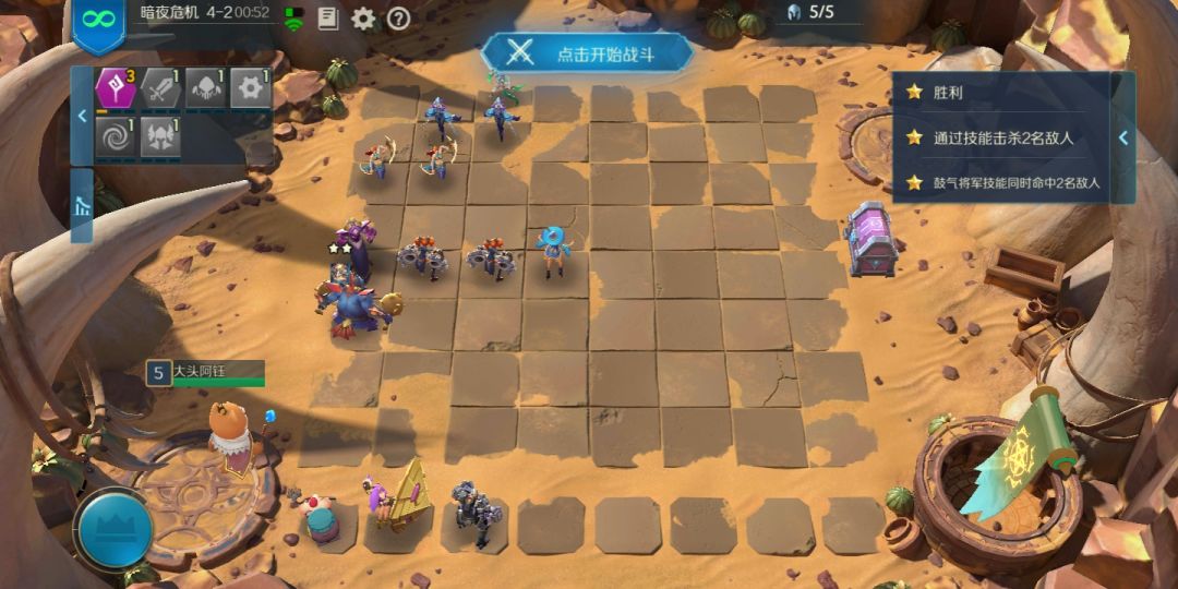 5-2 站位如图,图腾骑士转,看脸的一关,看骑士开不开盾,10秒之内死了一个就直接重来,没必要等
