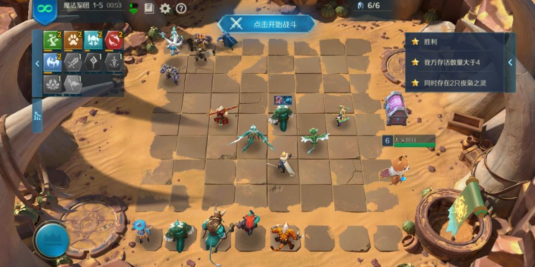 5-3站位懒得发了,夜莺两星带恶魔转和暴击大剑站在暴食面前防止他勾图腾,其他的站夜莺旁边