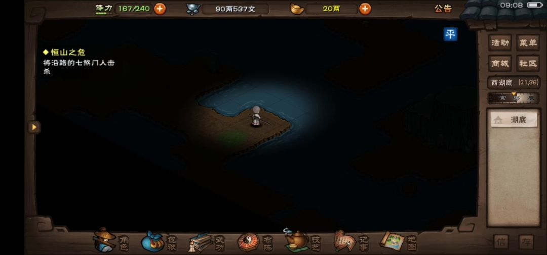 第一个山洞(19,16)(24,31)(39,0)一共三个宝箱,第二个山洞(20,5)处搜索,还有一个宝箱就是我视频中的位置,少林弟子一苇渡江(好像得十重)可以取到