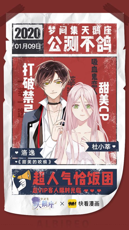 天鹅座恰饭团今日应聘成员——来自快看漫画 人气作品《甜美的咬痕》的主角洛逸和杜小莘。