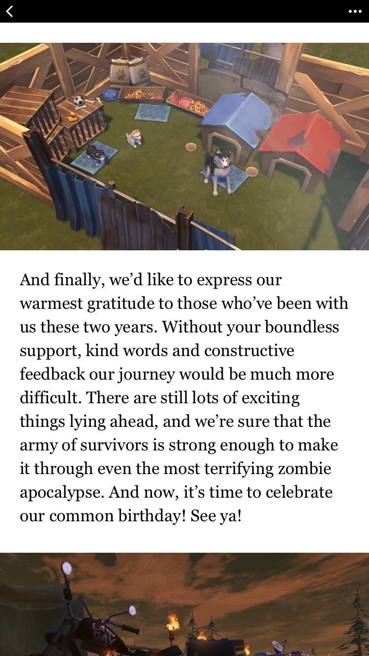 最后,我们希望向那些与我们一起走过这两年的人表达最诚挚的感谢,没有你们无微不至的支持,鼓舞人心的话语和建设性的反馈,我们的工作将变得难上加难。还有很多新鲜的东西将会出现,并且我们相信,即使是有最恐怖对僵尸阻挡,幸存者部队都足以强大到克服困难,现在请大家一同庆祝咱们共同的节日吧!再见!