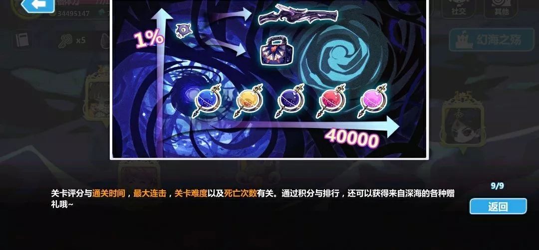 目前就楼主感觉这次幻海和上次没太大区别,不过有几个重要改变,首先就是一测水下关卡可以切备用了(不过目前水下关切好友存在bug,可能会取消切换好友)然后就是新加的天空关了 评分准则与原来相同,与通关时间 连击数 死亡数 通关难度有关(一般时间是拉分重要因素) ex关和最后两关需要门票才可进入,难度方面一共分四个等级(天真 虚伪 残酷 疯狂),疯狂难度需要通关残酷才会解锁,各位请量力而行(大佬随意)