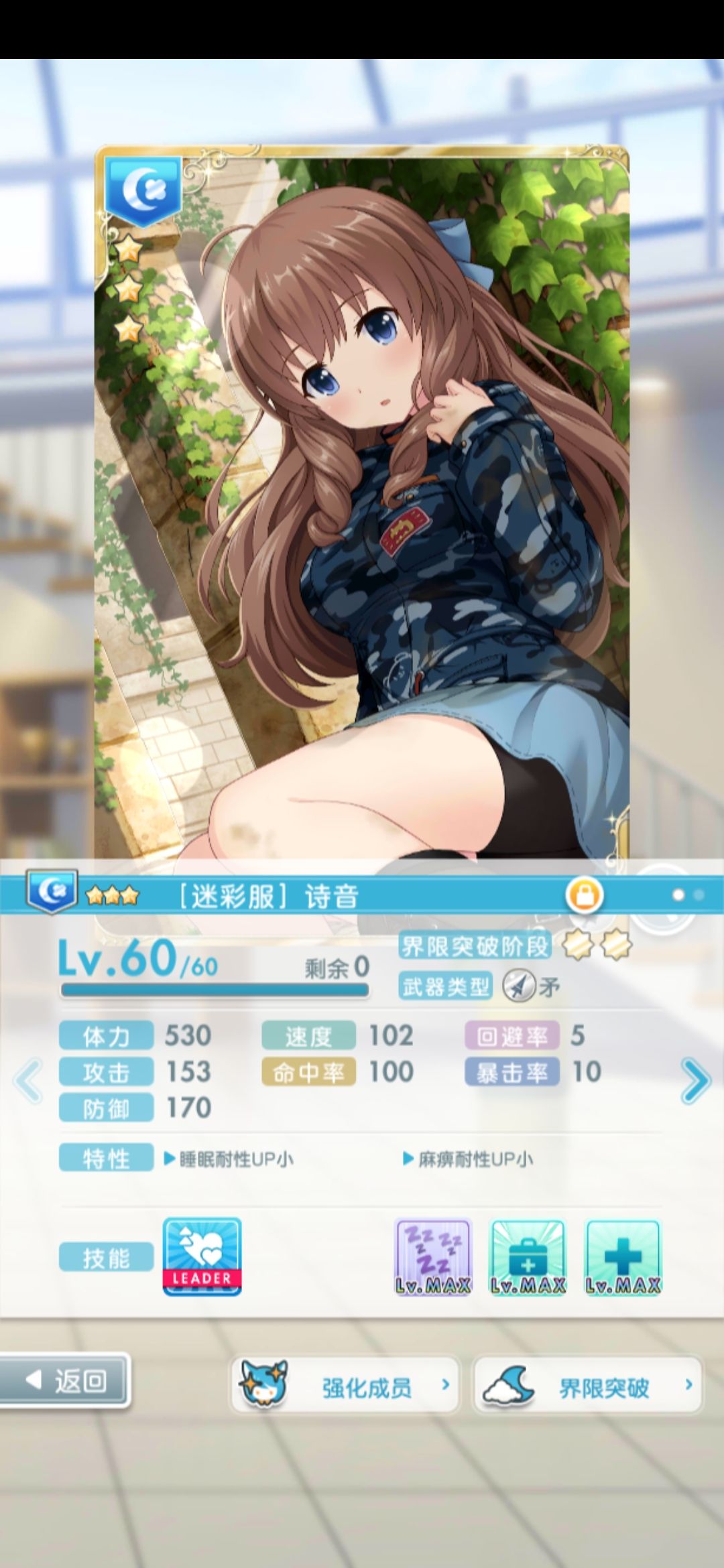 所以这卡技能不强,奶也不可能如初始技能的女帝玲,但是同队控制缺乏衬托,属性(速度与防御)也可圈可点。听说第二期虚拟塔顶层是红?(我打不到)估计有大用