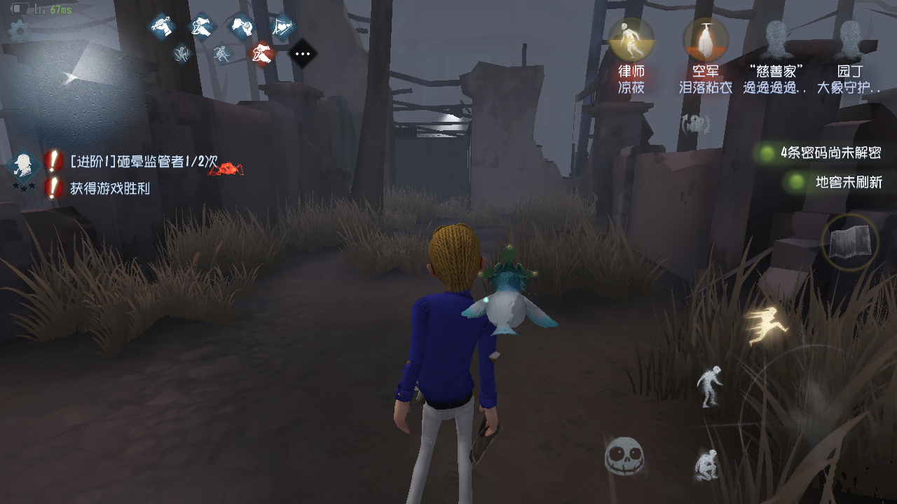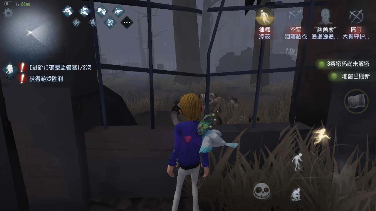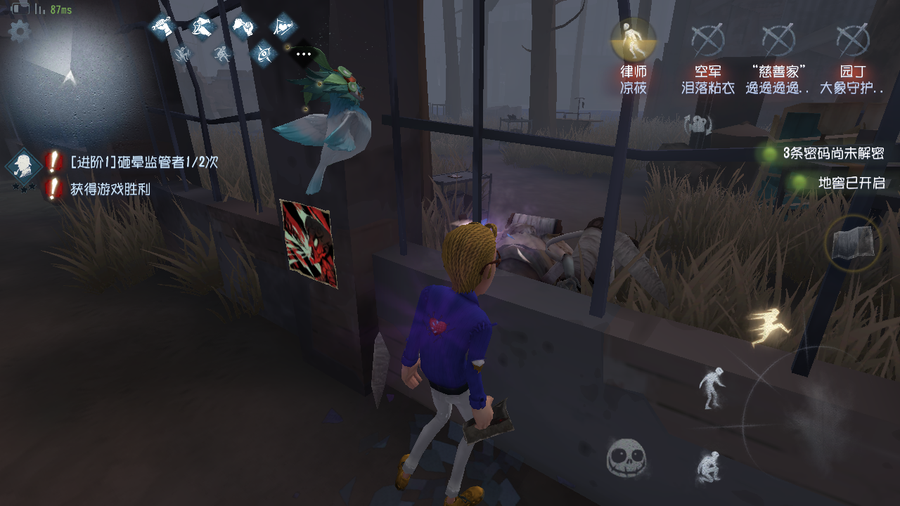 这个bug没谁了。当时被蜘蛛小姐姐捆在角落。快濒死的时候空军小姐姐来救了。满脑子想着逃跑结果转身就到了外面!(吃瓜~)。最后蜘蛛小姐姐退了,1人逃生赢了这局。。