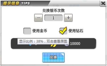点击主界面上方银币旁的加号弹出银币兑换界面(如下图)