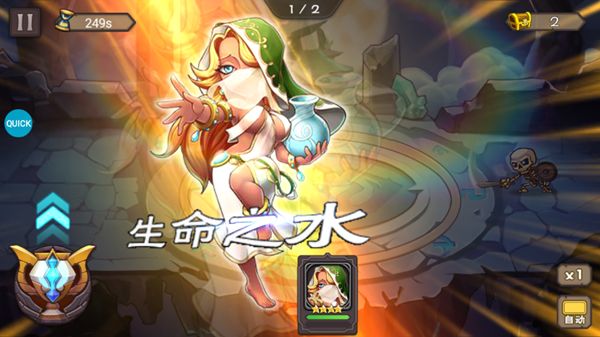 主动技能:生命之水,瞬间恢复全体队友大量生命,降低敌方中排最多3个单位20%暴击率,持续5秒。