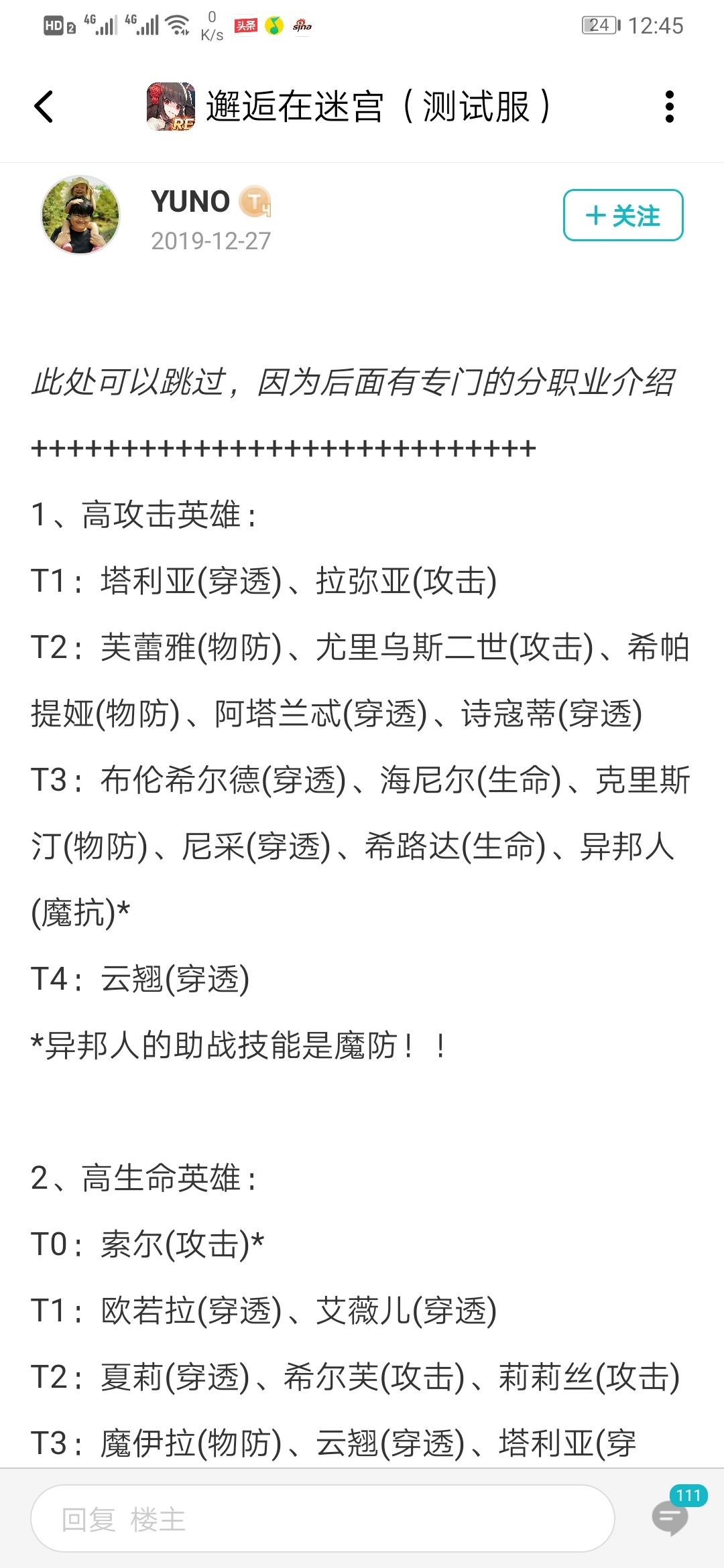 哦对了英雄培养优先度,我的是主角助战(拉弥亚)>输出控(欧若拉)>软控(阿塔)=欧若拉的助战(妮可)>阿塔助战(索尔)>buff工具人(芙蕾雅)=凑职业人(松),松可换其他物理弓ps. 后期我准备索尔换塔利亚,原因?你肯定没看上面给的大佬的攻略贴