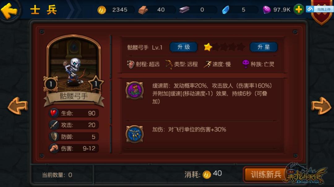 2) 类型:兵种分了三种类型——地面、远程、飞行。三者的作用一目了然,有一点值得重点关注的是,飞行兵种会优先攻击对面的远程兵种,这点极大的左右了我们对兵种的选择