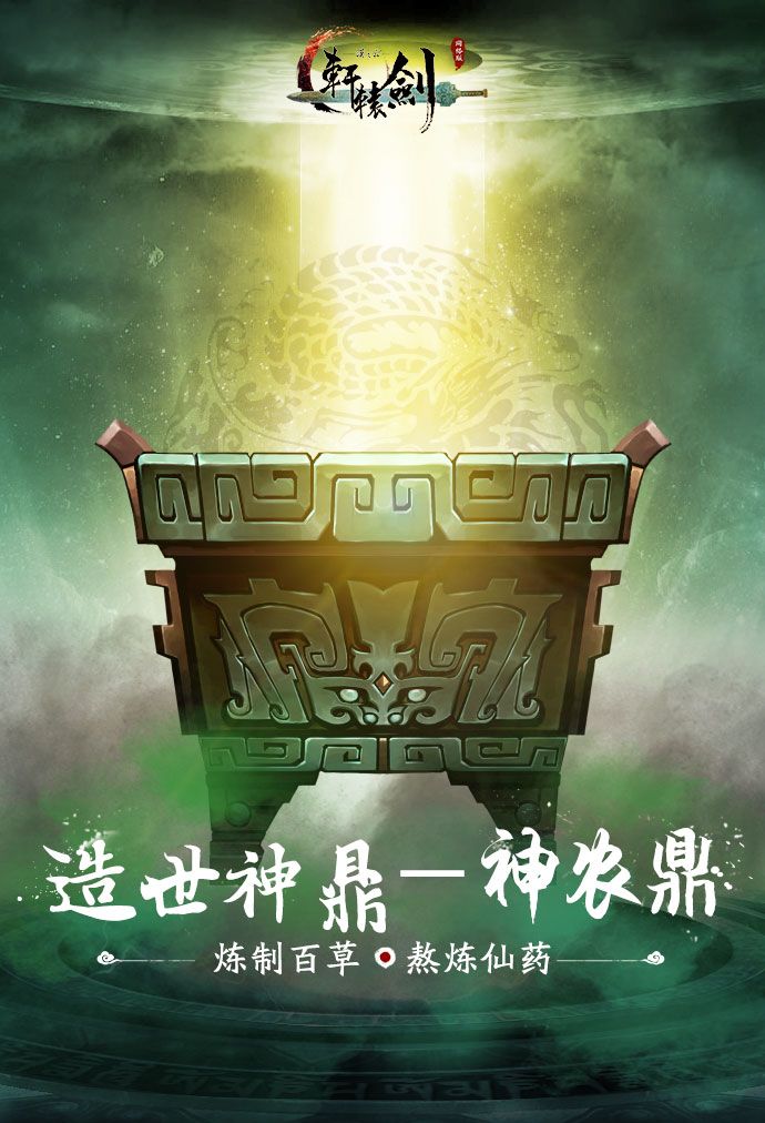 神农鼎古称造世鼎,上古时代神农氏为苍生遍尝百草,也为后世奠定了医学基础,并传为佳话。神农昔日炼制百草之古鼎,正因积聚千年来无数灵药之气,据说能炼制出天界诸神都无法轻易炼制的旷世神药,并隐藏其他神秘力量。在单机游戏中,以神农鼎为核心,就能炼化仙药。