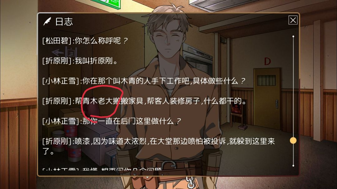 前面名字都没反,都是木青,这里反了,虽然一开始我想的是这人是凶手,假装和老板熟的,这算是个小提示,但后面他也说的是木青...