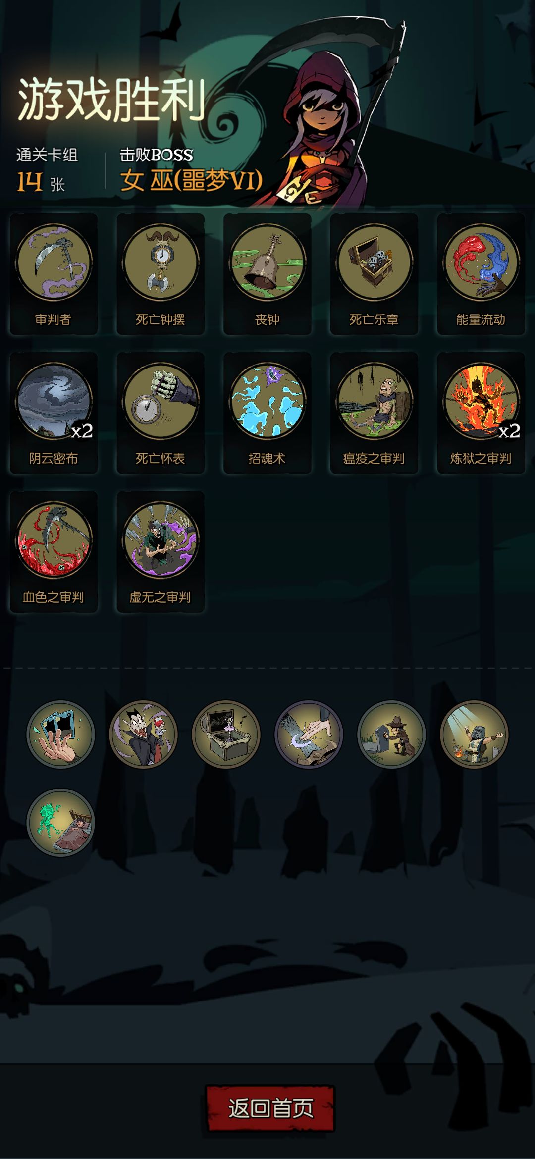 自己玩的一套牌: 无限死神降临 核心:死神乐章 (必拿)重要牌: 死亡怀表、阴云密布、炼狱审判机制: 迅速叠加 审判,洗入 1张死神降临进牌组,死神乐章 多洗入1张,怀表抽牌/技能抽2张,每消耗一张死神降临 又会抽一张,循环。