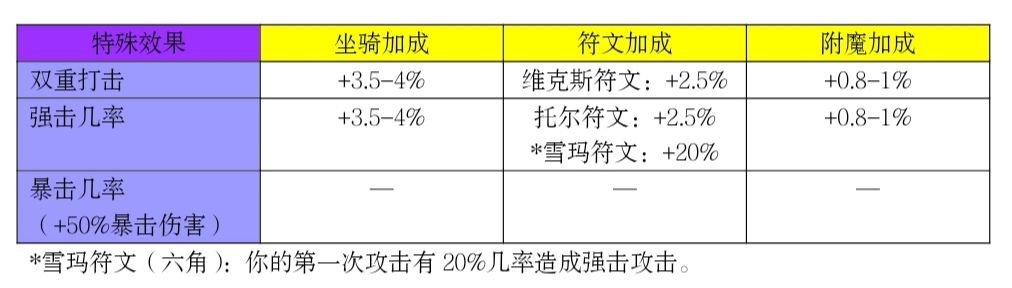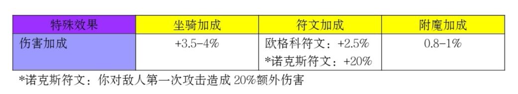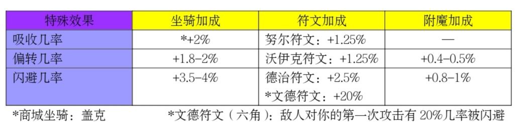 到了后期,玩家可以根据自己的喜好去叠一些特殊效果,特殊效果的触发几率高了才能更具有打击力度和抗伤力度,这里主要讨论“传奇”饰品、坐骑、五角符文、六角符文以及附魔,其中五角符文有4个槽,六角符文有1个槽,附魔有6个槽,下面是一些热门的特殊效果的比较。