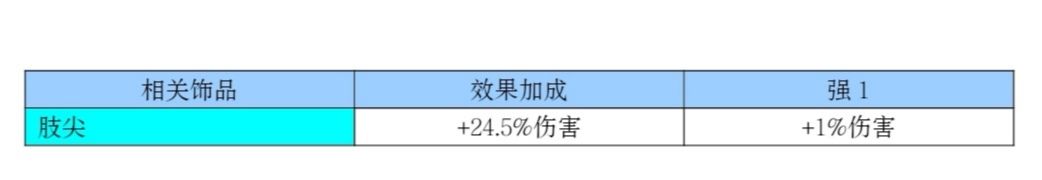 “肢尖”是本游戏中特有的套装饰品,也是叠伤害加成的强势饰品,能和宠物“卡洛儿”一起触发“+0.5%四重打击”。