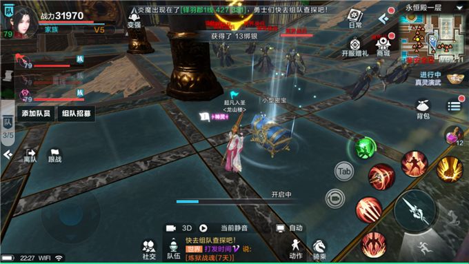 参与天愚密宝活动,需要玩家组队参与。宝箱刷新的位置是完全随机的,地宫里的任何地方都有可能,不过大多数时候都是刷新在有野怪出没的区域。为了提高效率,玩家队伍可以分散开寻找宝箱,如果有能力独自开启,可以独自开启。开启宝箱的时候,玩家会进行持续读条开启的状态,会被野怪的攻击打断,这时玩家就需要队友来帮助了。让队友去拉住野怪,自己开启,自己拉怪队友开启也是一样的,因为宝箱开启后的物资是附近队伍成员共同分配的。