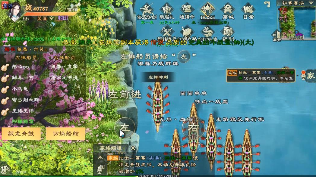 好了比赛正式开始,一般左排船员负责听指挥按就好,出现“左前近”时第一时间按。同时可以搭配使用“龙舟鼓”加成,右排的船员大家可以理解为船长,一般由指挥或者比较擅长的玩家担任!