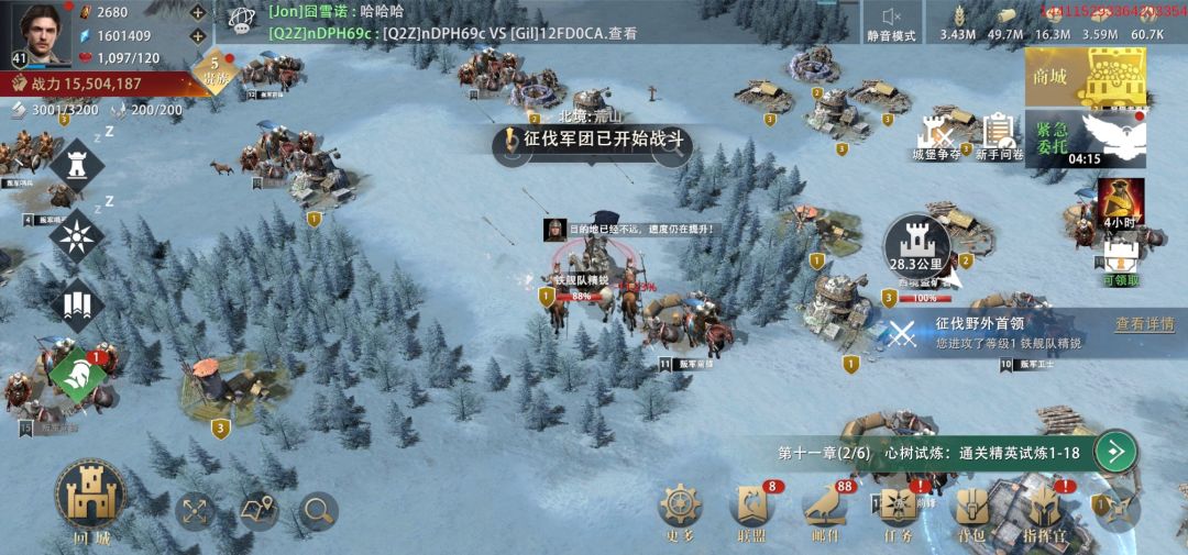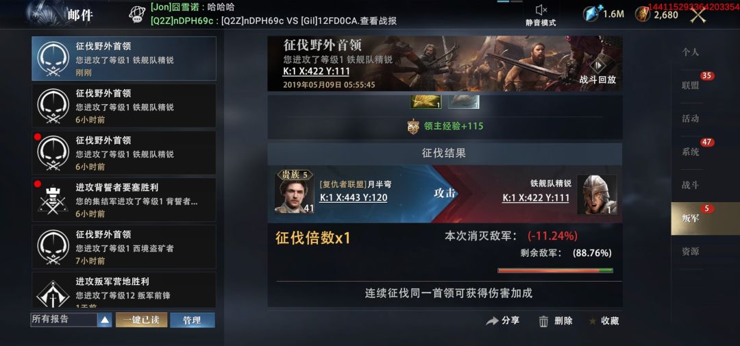 野外首领活动在外城,领主们出城后通过界面右下角的查找按钮搜索铁舰队精锐/西境盗矿者即可找到以这2个名字命名的野外首领,他们出没在外城的何处,有着1~8八个等级,其中1~3级野外首领可任意征讨,4-8级首领需加入联盟才可征讨,且击败低等级的野外首领才能挑战高等级野外首领。加入联盟后,击败野外首领还会给全体盟友发放联盟征伐礼。