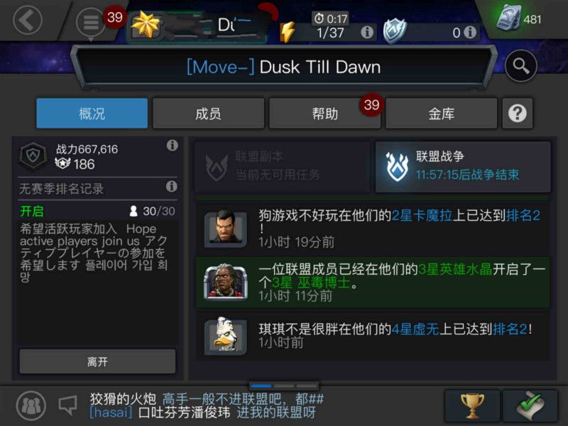 除了这些,联盟其他成员还可以帮你打完竞技场的英雄快速恢复体力,帮助其他成员的英雄恢复体力还可以获得功勋点,1000功勋点就可以开启一次联盟水晶,奖励非常丰厚。