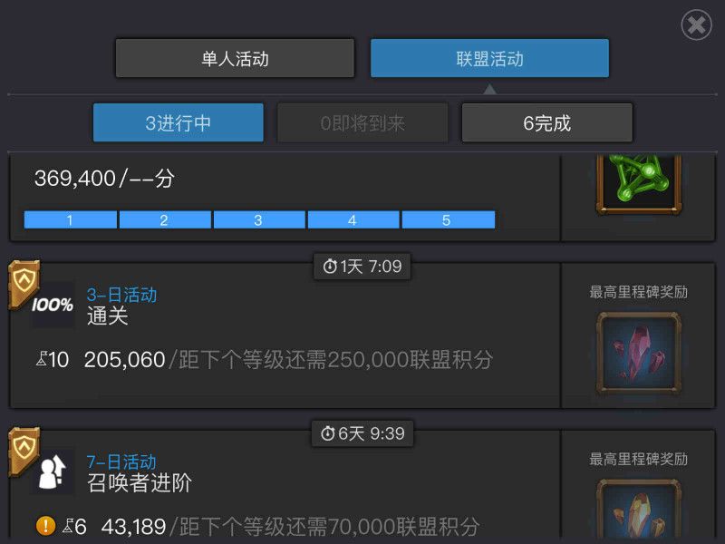 除了每日的活动副本之外这些活动是很好的获得突破材料的地方,所以一定要集中我们的资源或者加入活跃的联盟来拿到这些奖励。