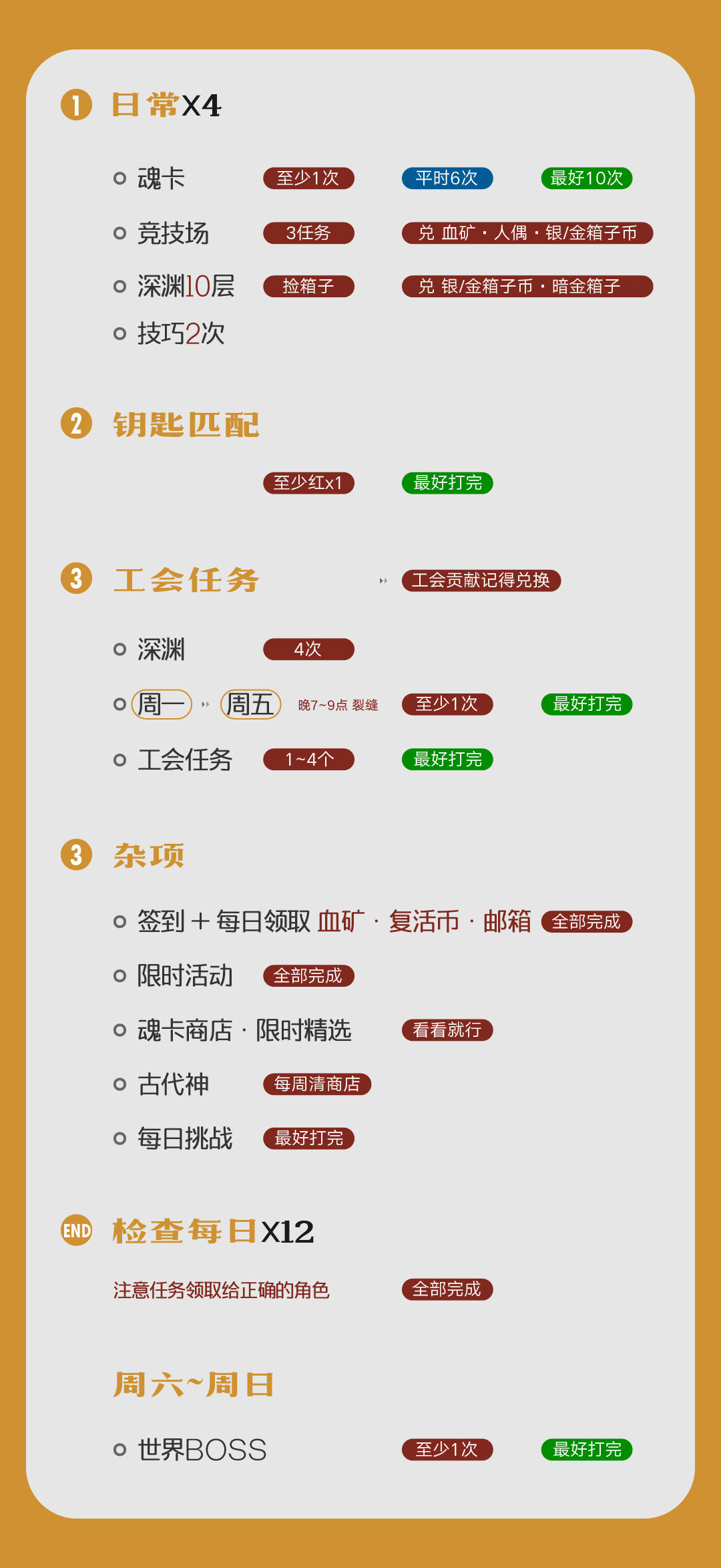 但是,这是已经解锁全部日常的号使用的表,对萌新来说可能没啥用。