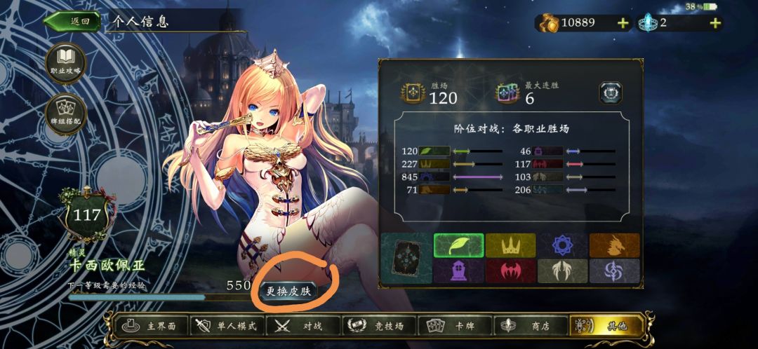 五:在其他——个人信息里,选择职业可以更换默认皮肤。