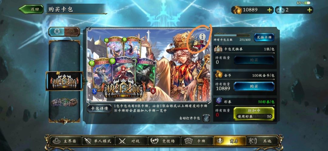如上图,从星神传说卡包开始,每个卡包界面的右上角都有这样一个符号,点开后会看到如下界面,