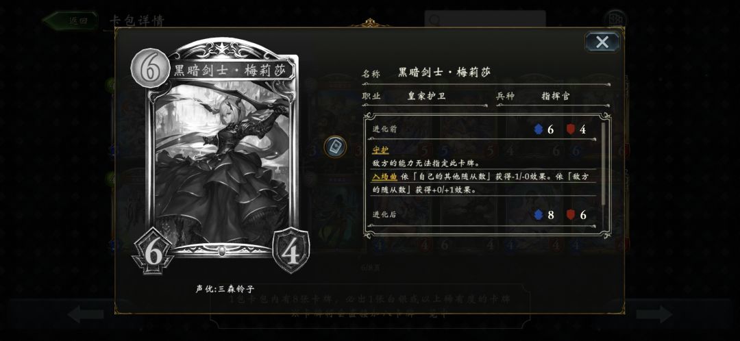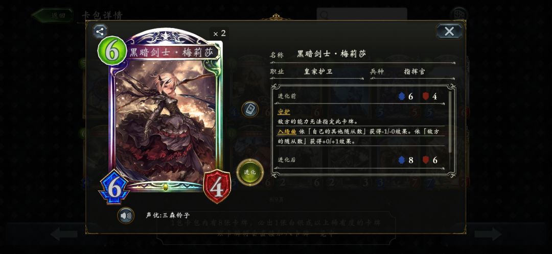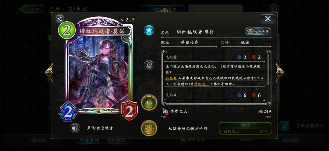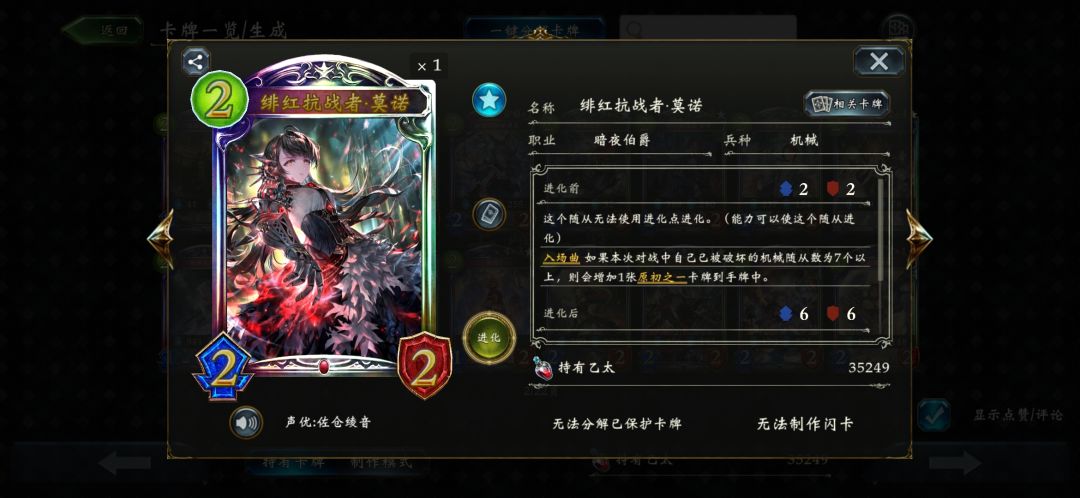 如图,这个是普通的大姐,绯红抗战者•莫诺。抽取钢铁的反叛者卡包获得,可以合成。