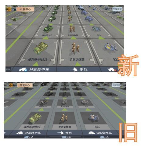 调整了科技树界面显示的角度,未拥有军备的颜色不再是灰色,将会是全部点亮的兵种样式,可以让指挥官们更清晰的看到自己想要的部队。