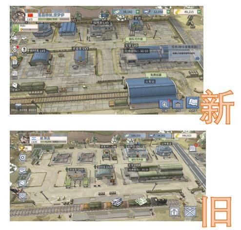 我们对基地进行了改造,提高了美术精度和布局,让整一个界面更立体更有科技感。更多的是,为火车新添加了火车站设计,调整了建筑摆放的位置,以及在主界面的左侧添加的便捷按键,排位军衔等级和在右侧添加任务详情与招募信息。