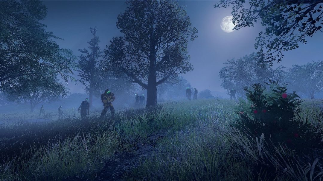 在我们刚抵达岛屿时,还是白天,逐渐开始适应这些怪物们,它们速度和攻击力好像都不很突出,很多次我们认为凭借身法就轻松摆脱它们,直到……灾难发生时,我才知道我们错的多离谱。那是在第一天的夜里,我的同伴罗德开枪击杀了附近的一只怪物,夜色里回荡着响亮的枪声,突然,夜幕里出现了大批黑压压的怪物潮,双眼放出渗人的红光,难道是枪声吸引了他们?而且与白天的动作缓慢不同,夜色中它们变的非常迅捷凶狠,速度和攻击力大增,感知感应能力提高非常多,如被激怒发出潮水般的攻击。夺命奔跑中我最后一眼的回顾,是眼睁睁看着它们撕碎了我们的阵营。