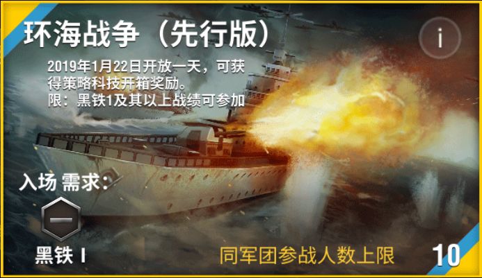 联赛期间,原周六10点开启的活动地图调整为周二10点开启,【星月岛】【征战峡谷】开放时间不变,请大家合理安排游戏时间~此外,下周二将限时开放新地图【环海战争(先行版)】替换【欧陆风云(活动)】,仅此一周,想体验新图的统帅千万不要错过哦~【环海战争(先行版)】首次开放指挥部将收集大家的意见作为正式版地图的修改根据,意见被采纳的统帅将获得丰厚的奖励!