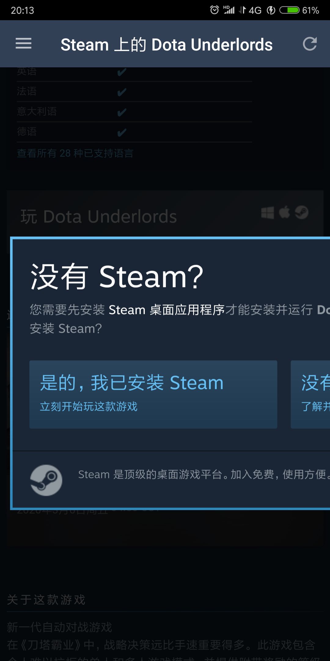 小米安装了steam了也登录了怎么下不了游戏啊,一直这个界面,求教怎么解决,点击是的,我已安装steam也没有用,无动于衷就停在这个界面,我服了...