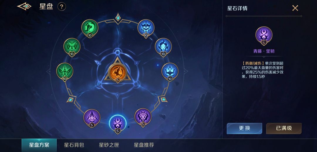 青藤·坚韧——此星石可以避免鳗鳗被敌方刺客秒杀,使他有机会借助闪现、二技能或控制技能逃生或反杀。