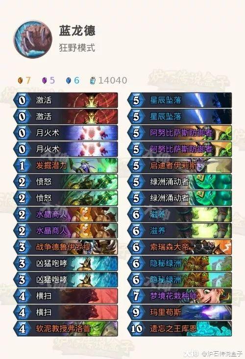 其次我们再来看看职业卡,小德的王库恩、星界沟通都是大哥体系才会用、骑士的神秘挑战者也是中慢速构筑、猎人的兽群和牧师的炸弹以及萨满的异变等等就不用说了,都是比较偏慢。法师的火妖虽然还不错,但也是中速卡组才会带,只有小鬼首领会增加动物园卡组的出场率,基本大的环境都是中慢速卡组在制霸!