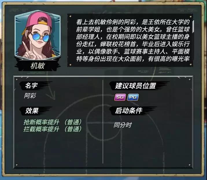利用亚历克斯先天的高跑动优势进入篮下,如果没空位可以假上篮真传把球给队友或突破上篮技能得分。注意不要频繁使用这招,否则对手之后对这招会有防备。