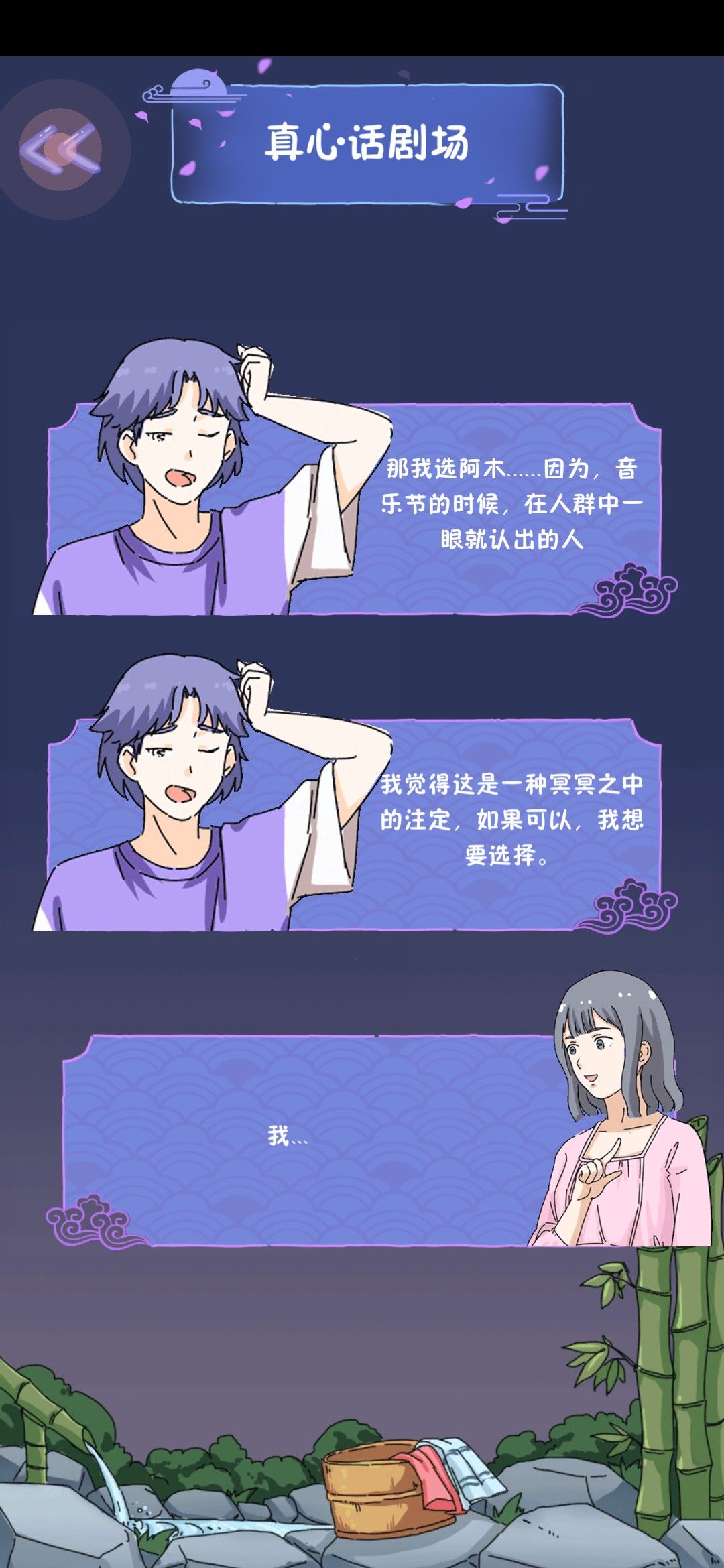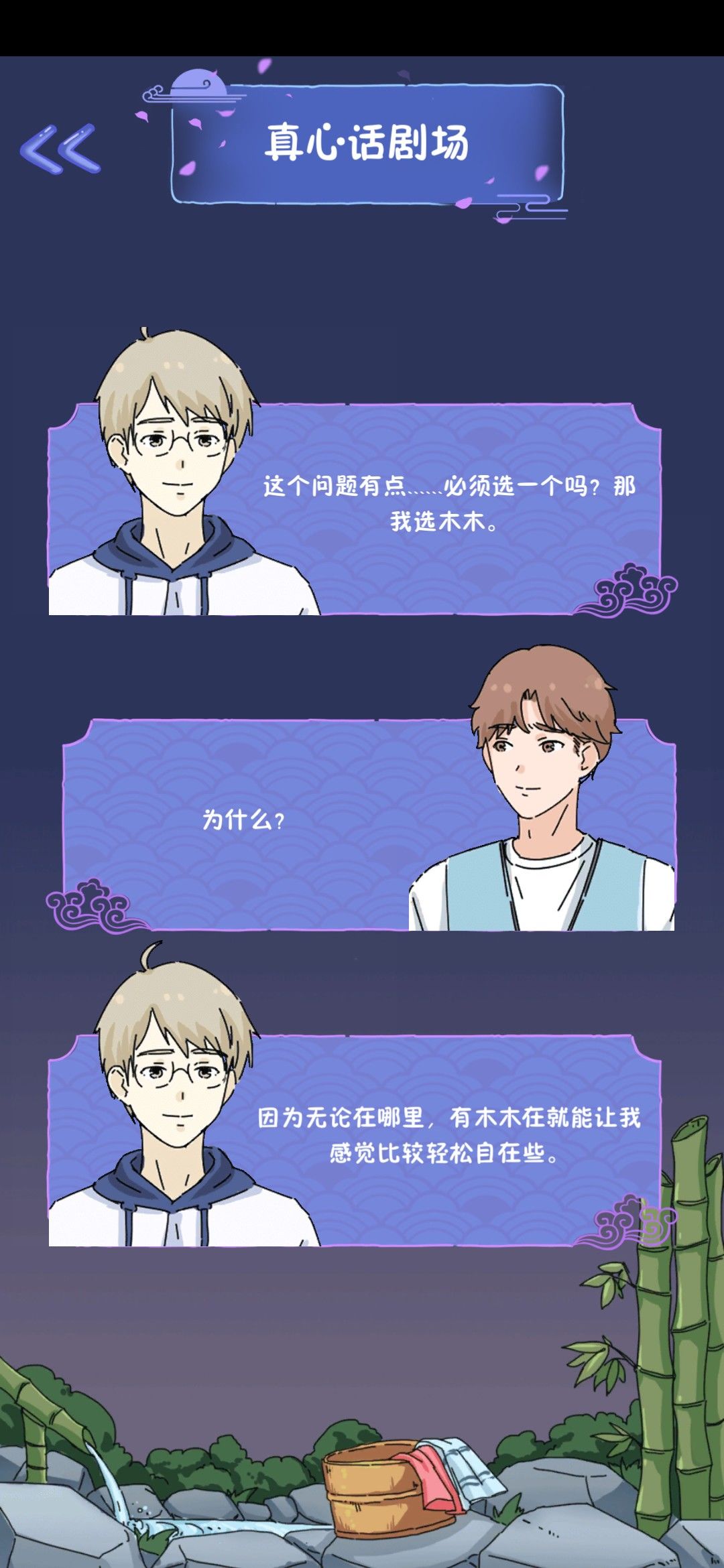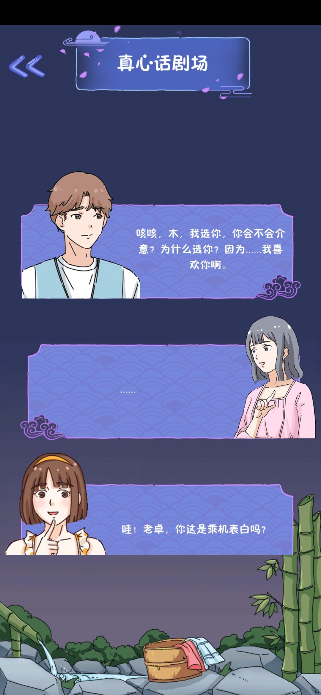 一直选择大白的结果就是,三个男生都会成为你的。真心话大冒险现场kiss全都喜欢木木真是迷啊,那另外两个女生岂不是很尴尬😳😳但我还是喜欢大白,甜甜的恋爱值得拥有。