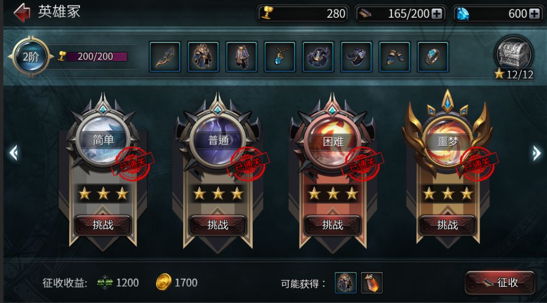 通关主线后猎魔者将获得荣誉积分,累计荣誉积分,开启英雄冢章节。通关英雄冢,猎魔者则可以获得角色装备,并且会提高每次征收的收益。征收将获得金币、经验,有概率获得装备与强化石。